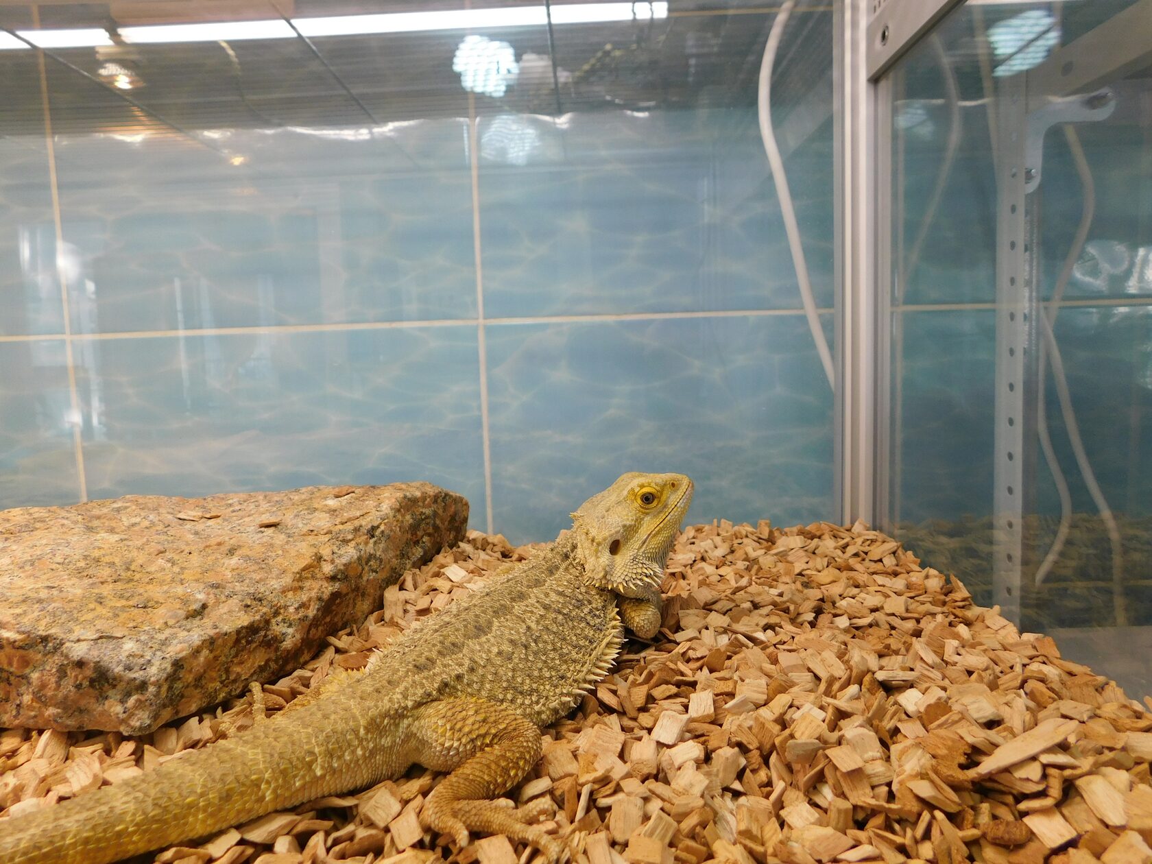 — А наша любимая бородатая агама? Красотка тоже переселилась в новый домик — он больше и точно уютнее, чем был раньше. Она даже стала выглядеть более счастливой: ушли чёрные пятнышки с её жёлтого тела!