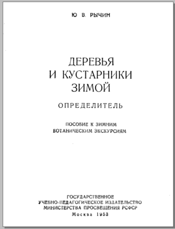 Рычин Ю. В. Деревья и кустарники зимой. Определитель. Пособие к зимним ботаническим экскурсиям. — М.: Государственное учебно-педагогическое издательство Министерства просвещения РСФСР, 1953.
