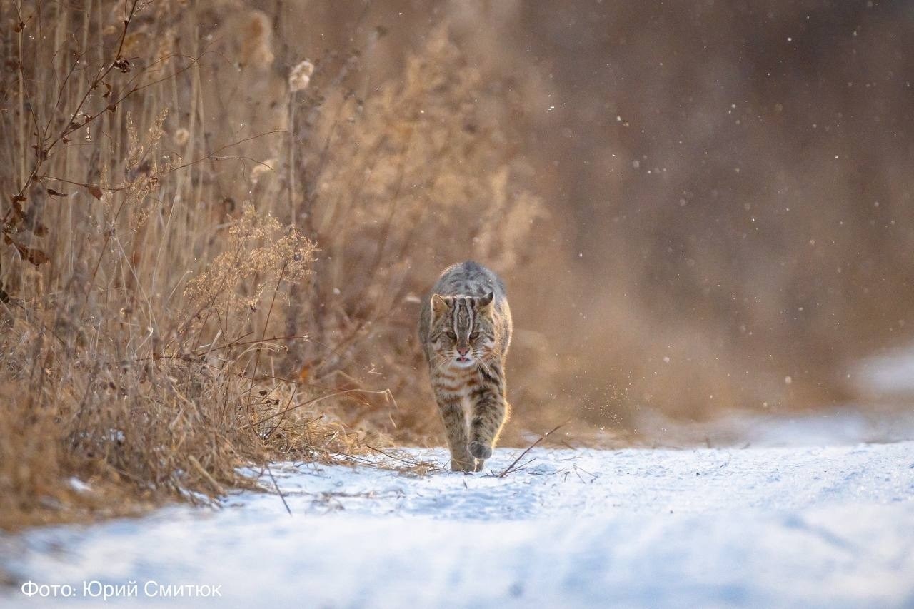 Известный фотограф Юрий Смитюк запечатлел скрытного дальневосточного лесного кота в дикой природе Уссурийского заповедника в Приморском крае. Мастеру удалось сделать серию выразительных снимков краснокнижного хищника во время зимней охоты на грызунов.