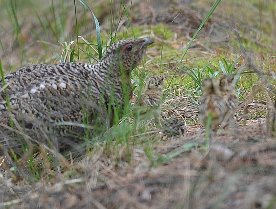 Когда глухарка уже становится многодетной мамой, она очень сильно рискует собой, чтобы уберечь потомство, «вызывая огонь на себя».