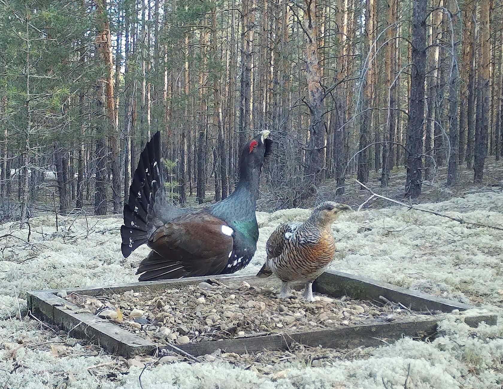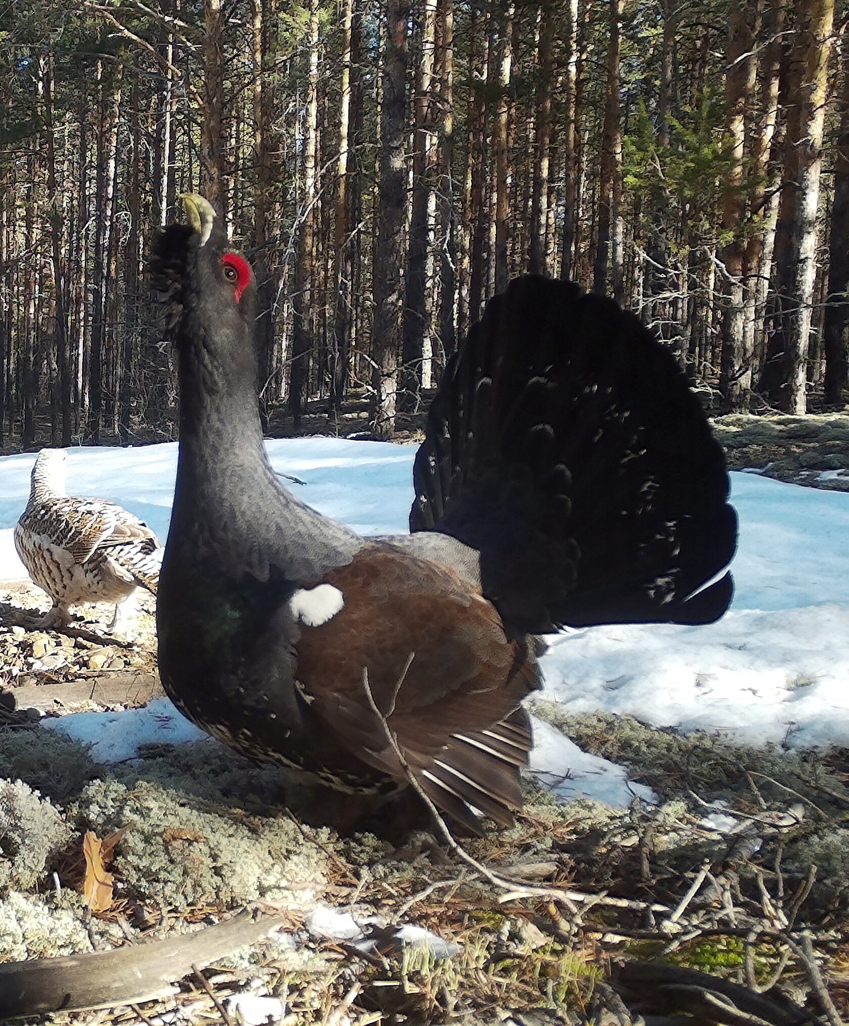 К петуху, важно расхаживающему, как павлин, слетает самка. После нескольких ритуальных кругов вокруг неё — себя показать, на неё посмотреть, копалуха уводит приглянувшегося кавалера с токовища.