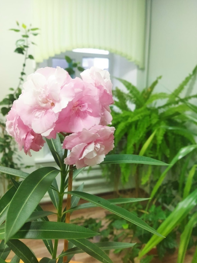 Когда золотые краски осени уступают место серому небу, а солнце становится редким гостем, душа особенно жаждет ярких красок и тепла. И как же приятно, когда такое солнечное чудо появляется прямо у нас под рукой! На станции юных натуралистов в г. Мичуринске Тамбовской области расцвёл новый обитатель — олеандр.