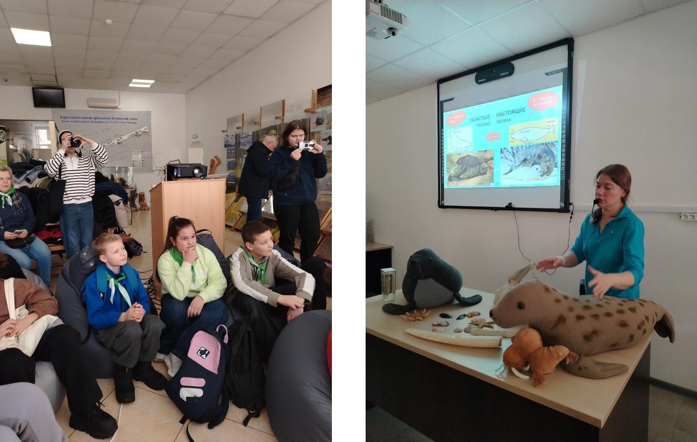 • Лекция Александры Керпо: сотрудник Музея Мирового океана из Калининграда, Александра Керпо, провела увлекательную лекцию о тюленях, научив различать их от моржей, белых медведей и каланов, а также рассказала об их удивительной жизнедеятельности.